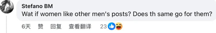 “如果女性给其他男性的帖子点赞呢?她们是否也应该受到同样的对待?”